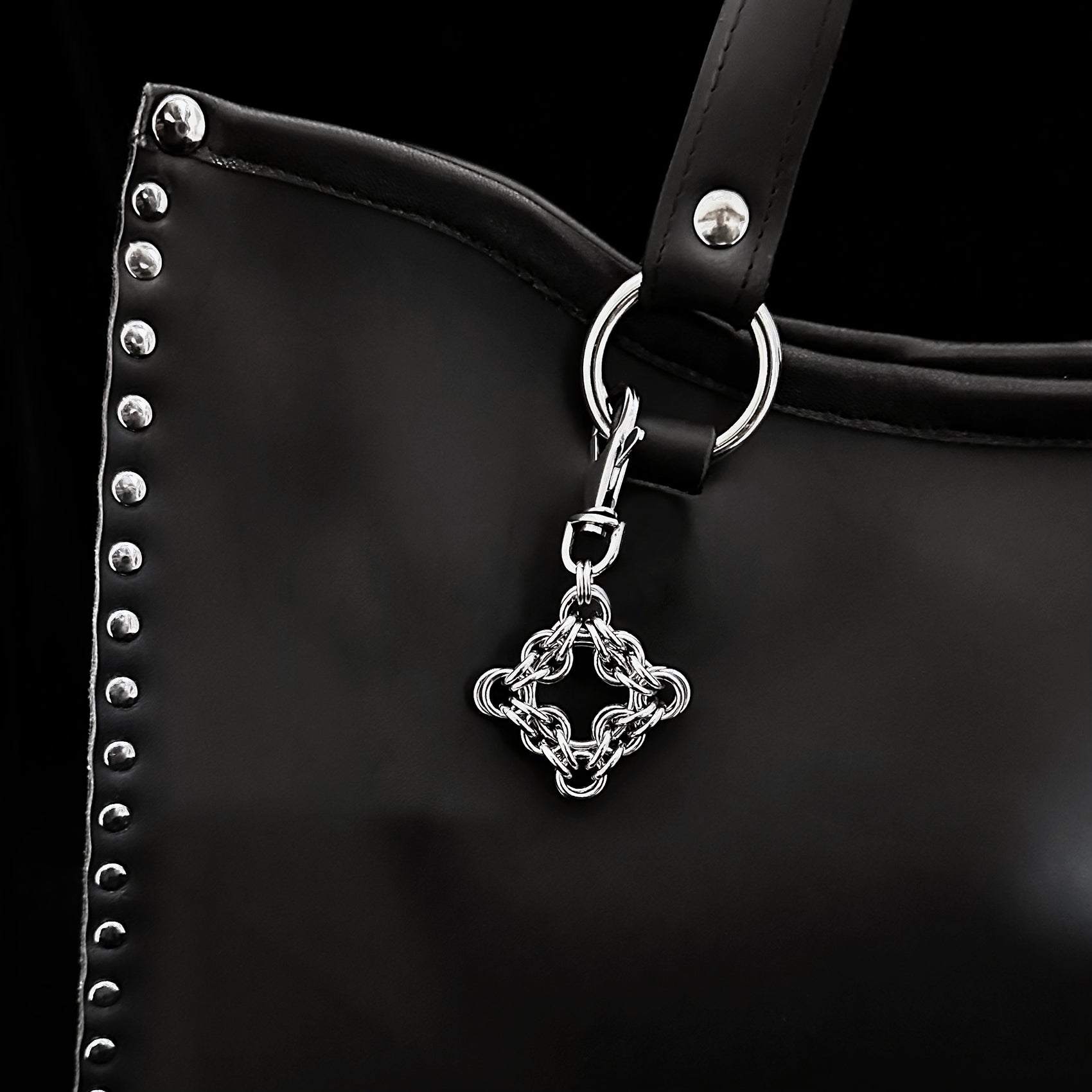 Attach this diamond-shaped charm to your bag and instantly elevate your everyday carry with gothic flair. Mix and match with other charms, clip them together to create your own custom chain, or let it stand solo as a statement piece. Perfect for adding personality to any purse.