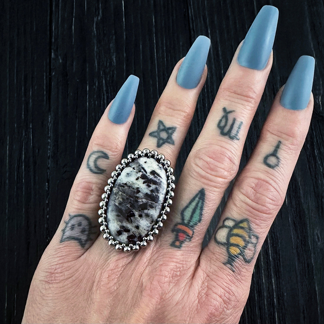 WINTER GEMSTONE 2026 Oval Astrophyllite Ring: Size 8