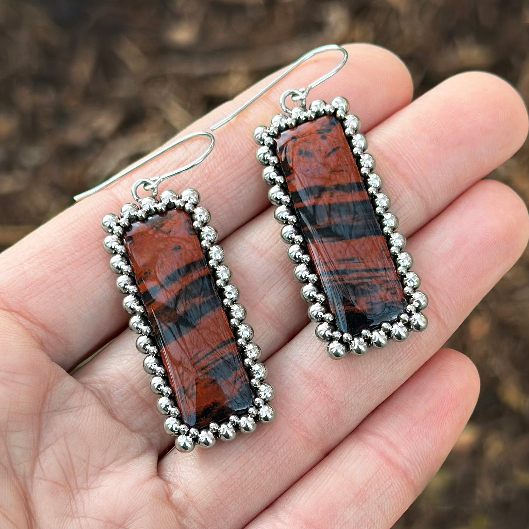 FALL GEMSTONE 2025 Mahogany Jasper Rectangle Earrings