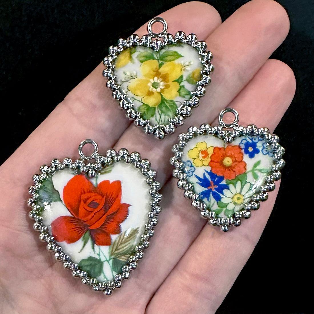 VALENTINE'S 2026 VINTAGE Small Glass Heart: Multi-Flower